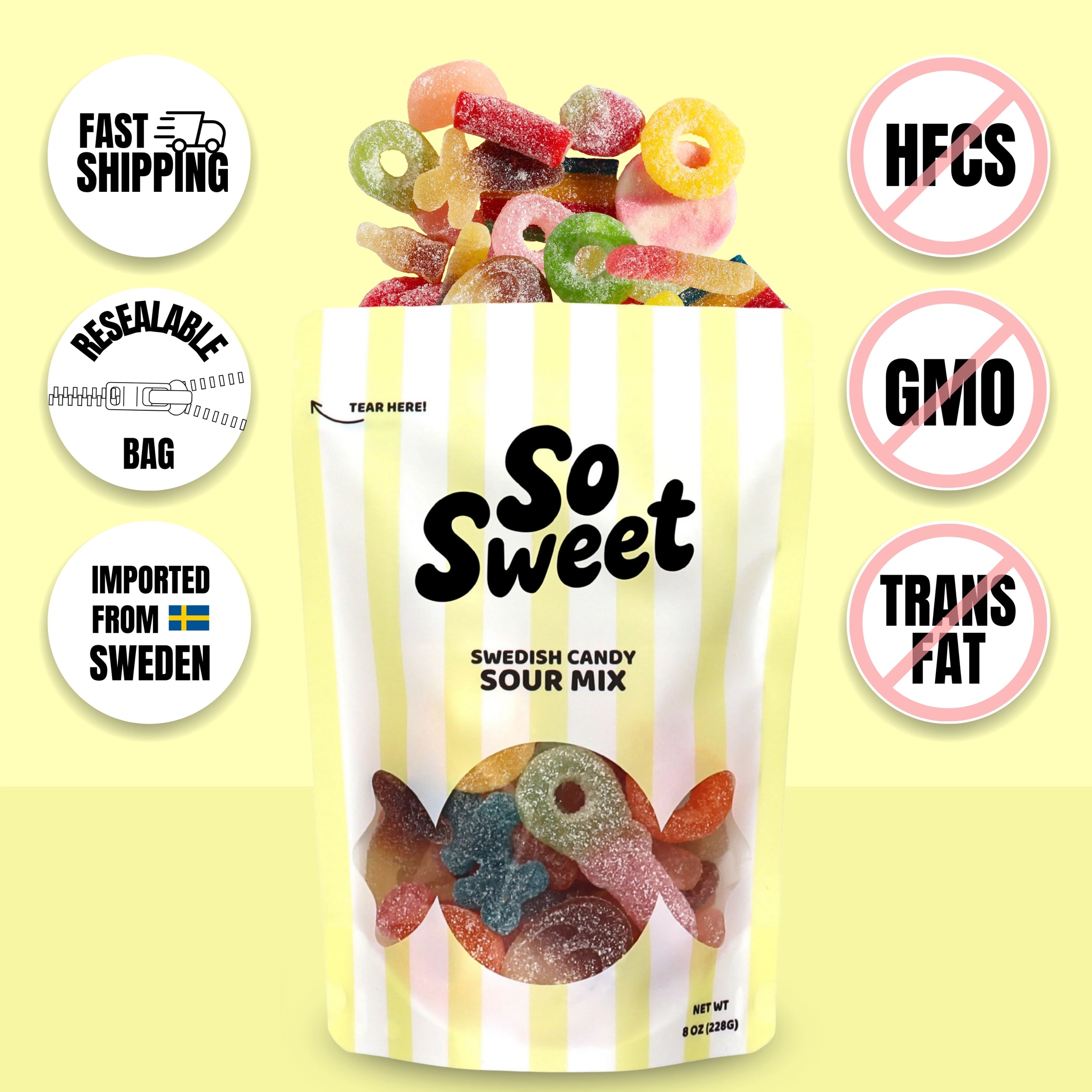 Get ready for a tangy blast of sour delight with our Swedish Candy Sour Mix! This vibrant mix is packed with a variety of sour flavors, combining chewy, fruity, and nostalgic Scandinavian goodness in every bite. Sealed in a convenient half-pound resealable bag, it’s the perfect sweet treat!