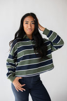 OLIVE STRIPE RUGBY POLO TEE